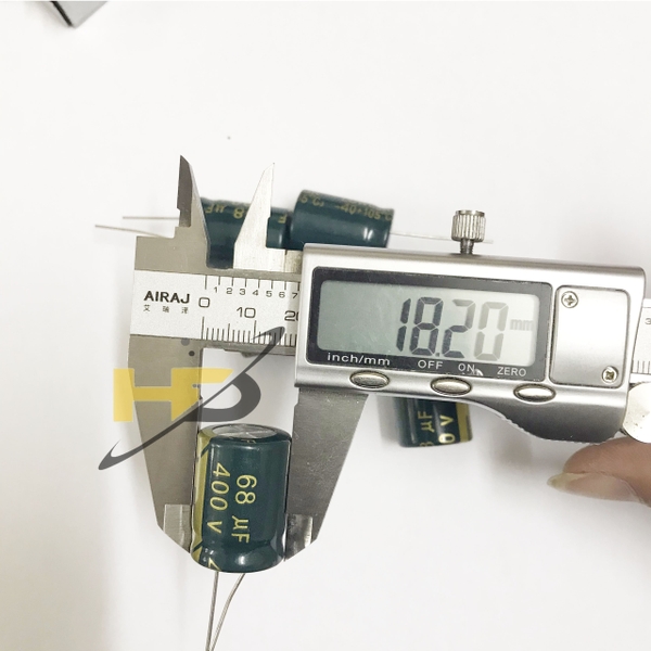 Tụ hóa 68uF 400V là tụ phân cực, có dung môi là một lớp hóa chất. Tụ hóa 400V 68uF là tụ có hình trụ, trị số được ghi trực tiếp trên thân tụ. Sau trị số điện dung bao giờ cũng có giá trị điện áp, điện áp ghi trên tụ chính là điện áp cực đại mà tụ có thể chịu được, vượt qua giá trị này thì lớp cách điện sẽ bị đánh thủng , trong thực tế ta phải lắp tụ có trị số điện áp cao gấp khoảng 1,5 lần điện áp của mạch điện.